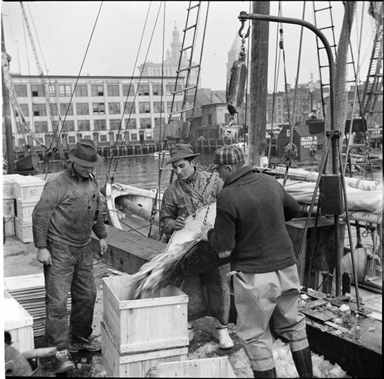 Waterfront. [Unloading fish.]