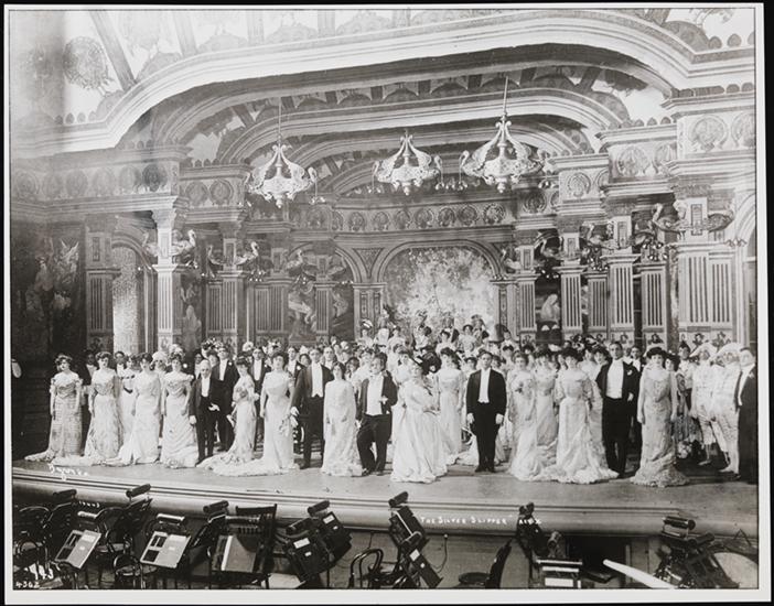 A scene from Owen Hall and Leslie Stuart's musical "The Silver Slipper" presented by John C. Fisher at the Broadway Theatre in 1902 featuring Sam Bernard as Henry Bismark Henschs.