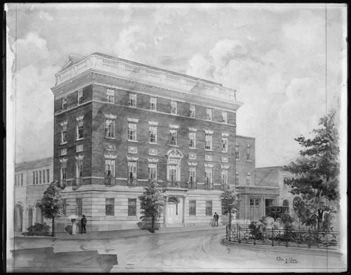 78th Street at the S.W. corner of Park Avenue. Watercolor rendering dated 1916.