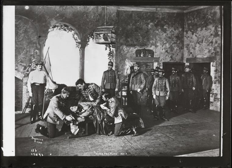 A scene from Paul M. Potter's play "Under Two Flags" presented by Charles Frohman in 1901 featuring Blanche Bates as Cigarette.