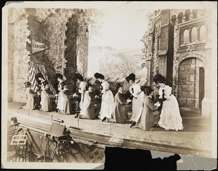 A scene from the musical "Florodora," book by Owen Hall and and music by Leslie Stuart presented at the Broadway Theatre, Broadway and 41st Street, New York City in 1900.