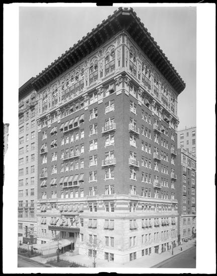 500 West End Avenue at the N.E. corner of 84th Street. Apartment house.