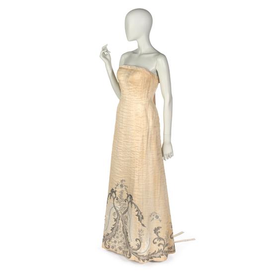Ball gown in Chantilly lace over silver-white duchesse silk satin