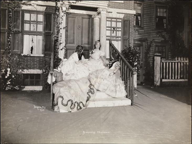 White Studio photographer's stamp on verso, including credit line and permission to publish. White's name has been changed in black ink to "Byron/1695 Broadway."