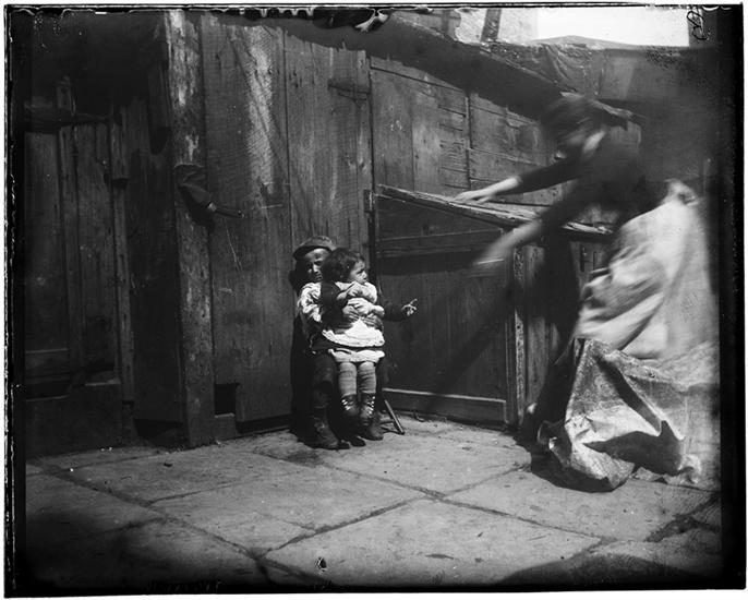 Two Greek children in Gotham Court debating if Santa Claus will get to their alley or not. He did.