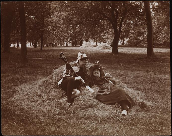 Actors in an open air production of William Shakespeare's "As You Like It" presented on the grounds of what notes on verso of print describes as the Stevens Residence, Hoboken, N.J.
