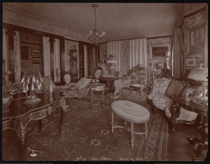 Portrait, Mrs. Leslie Carter and Residence Interiors.
