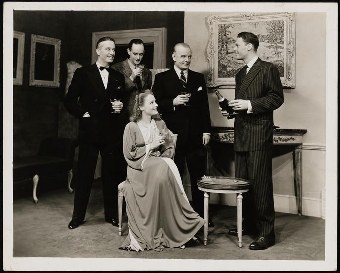 [Constance Cummings as Racine Gardner, James Rennie as Emory Jelliffe and Frank Conroy as Lucian Gardner in "One-Man Show".]