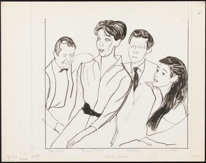 [Merv Griffin as Woody Mahoney, Will Mahoney as Finian McLonergan and Helen Gallagher as Sharon McLonergan in "Finian's Rainbow".]
