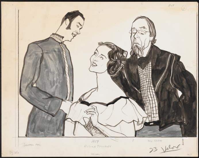 [Merv Griffin as Woody Mahoney, Will Mahoney as Finian McLonergan and Helen Gallagher as Sharon McLonergan in "Finian's Rainbow".]