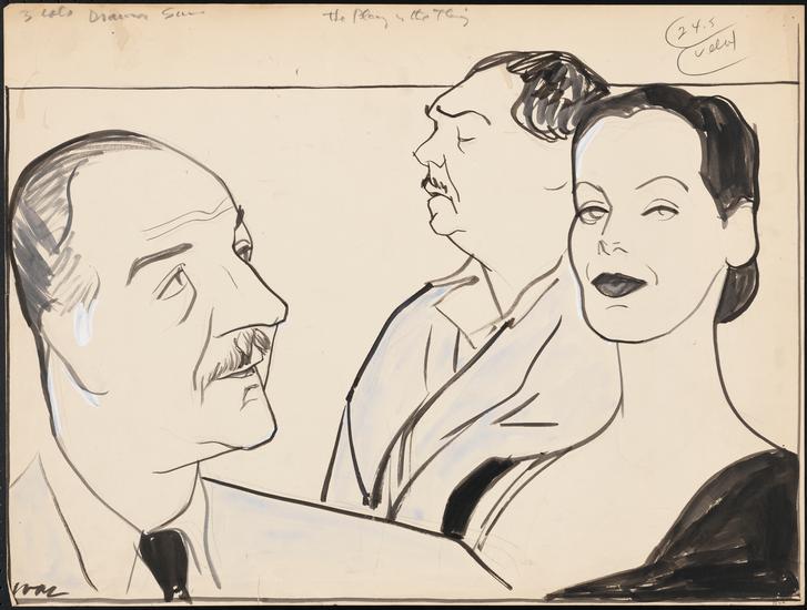 [Nancy Kelly as Patricia Graham, Arthur Margetson as Peter Kyle and Alec Guinness as Flight Lieutenant Graham in "Flare Path".]