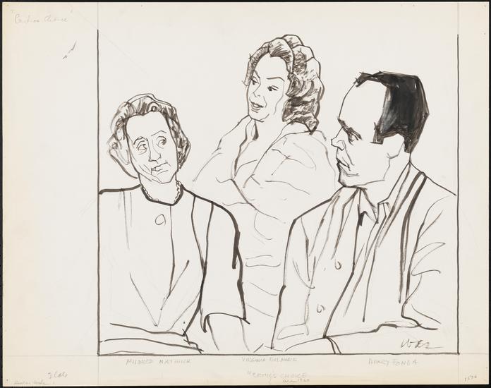 [Leora Dana as Nancy Gray, Robert Ross as Malcolm Bryant and Henry Fonda as Charles Gray in "Point of No Return".]
