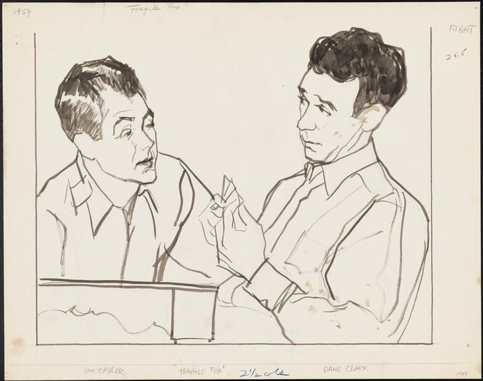 [Don Taylor as First Lieut. Harry Woodruff and Dane Clark as First Lieut. Joseph Costa in "Fragile Fox".]