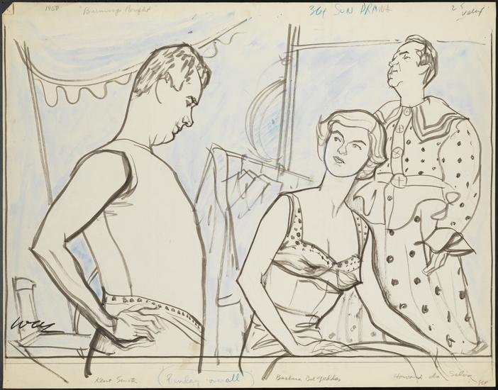 [Howard Da Silva as Friend Ed, Barbara Bel Geddes as Mordeen, Kent Smith as Joe Saul, and Martin Brooks as Victor in "Burning Bright".]