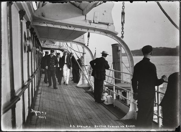 "S.S. Ethiopia. Doctor coming on board." on neg.