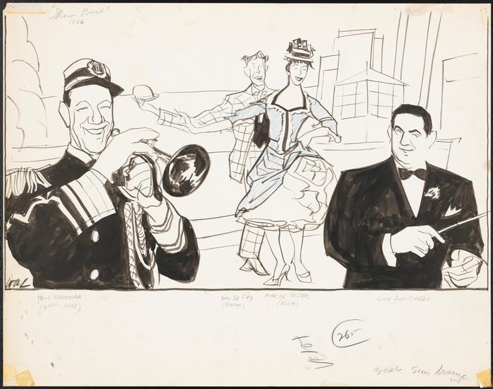 [David Atkinson as Gaylord Ravenal, Gloria Hamilton as Magnolia and Andy Devine as Cap'n Andy in "Show Boat".]