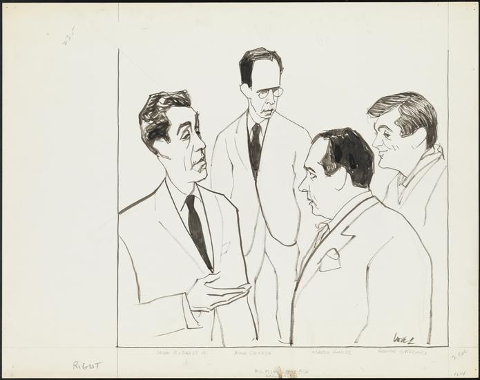 [Mike Wallace as Samuel Ellis, Percy Waram as Lucas Edgerton and Martin Gabel as Jonas Astorg in "Reclining Figure".]