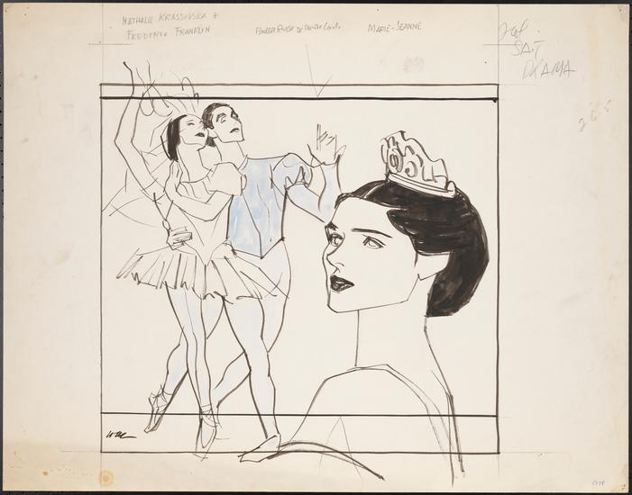 [Roland Petit as The Sailor and Jeanmaire as The Waitress in "La Rose Des Vents" for "Les Ballets de Paris".]