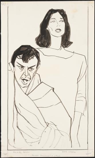 [Barbara Sohmers as the Laundress and Gordon Sterne as K in "The Trial".]