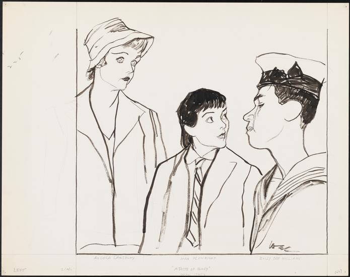 [Frederick Combs as Geoffrey, Hermione Baddeley as Helen and Frances Cuka as Josephine in " A Taste of Honey".]