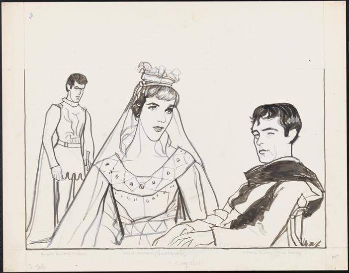 [Julie Andrews as Guenevere and Richard Burton as Arthur in "Camelot".]