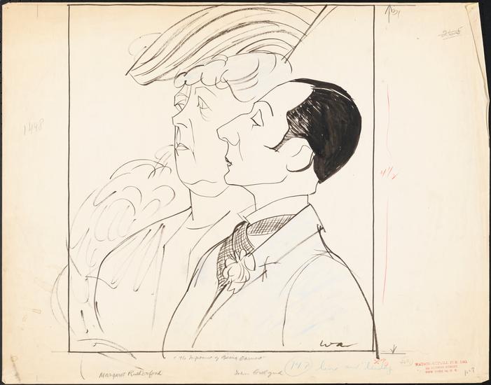 [Margaret Leighton as Beatrice and John Gielgud as Signior Benedick of Padua in "Much Ado About Nothing".]