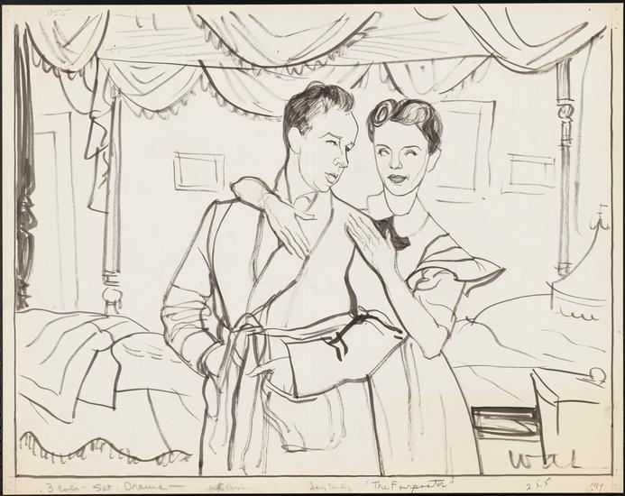 [Romney Brent as Michael and Sylvia Sidney as Agnes in "The Fourposter".]