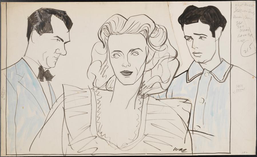 [Anthony Quinn as Stanley Kowalski, Russell Hardie as Harold Mitchell, and Uta Hagen as Blanche Du Bois in "A Streetcar Named Desire".]