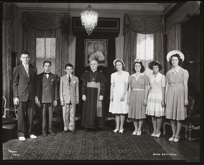 Portrait of Francis Cardinal Spellman with Prize Winning Children at his Residence.