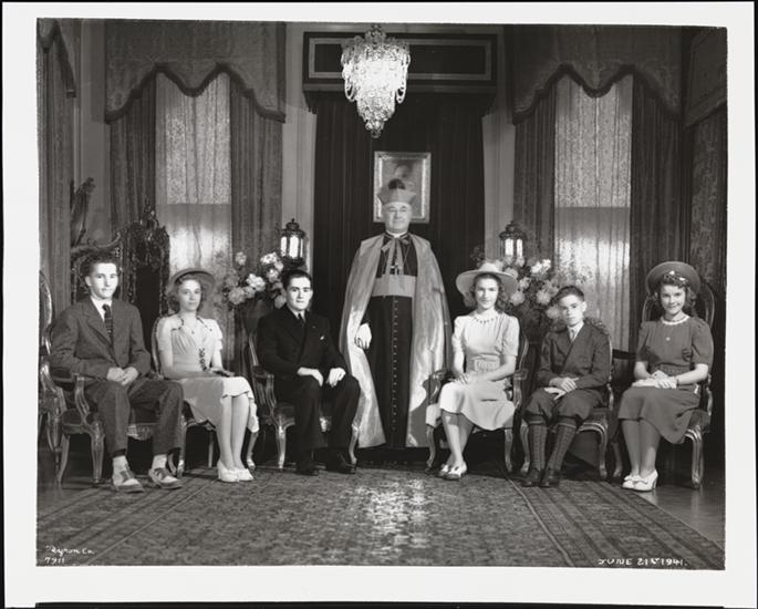 Portrait of Francis Cardinal Spellman with Prize Winning Children at his Residence.
