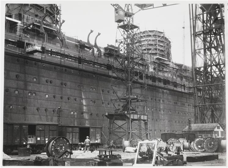 [French Line, S.S. "Normandie", Under Construction, Saint-Nazaire, France.]