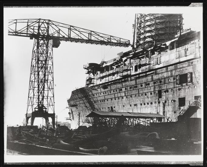 [French Line, S.S. "Normandie", Under Construction, Saint-Nazaire, France.]