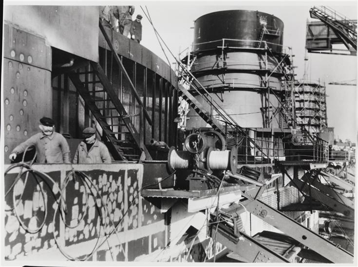 [French Line, S.S. "Normandie", Under Construction, Saint-Nazaire, France.]