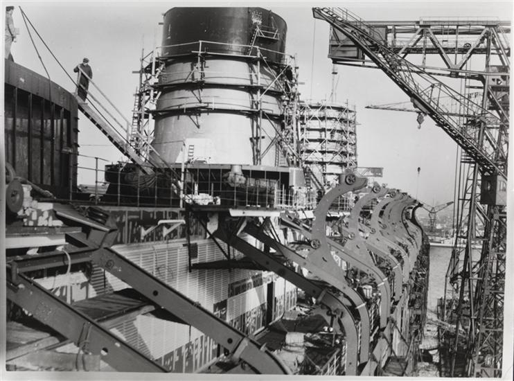 [French Line, S.S. "Normandie", Under Construction, Saint-Nazaire, France.]