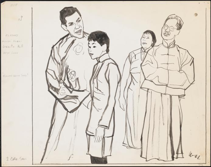 [Anita Darian as Helen Chao, Jack Soo as Frankie Wing, and Cely Carrillo as Mei-Li in "Flower Drum Song".]