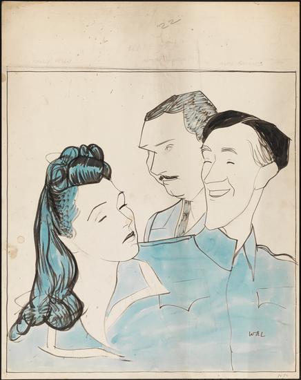 [Irene Worth as Celia Coplestone, Robert Flemyng as Edward Chamberlayne and Alec Guinness as An Unidentified Guest in "The Cocktail Party".]