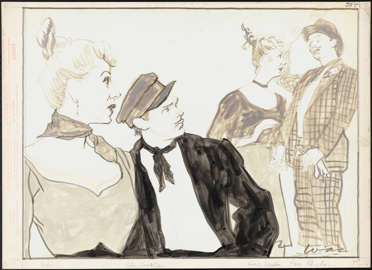[Norwood Smith as Judge Aristide Forestier, Lilo as La Mome Pistache and George S. Irving as Boris Adzinidzinadze in "Can-Can".]