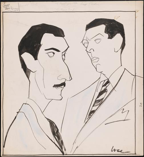 [Lee Tracy as Hildy Johnson and Osgood Perkins as Walter Burns in "The Front Page".]