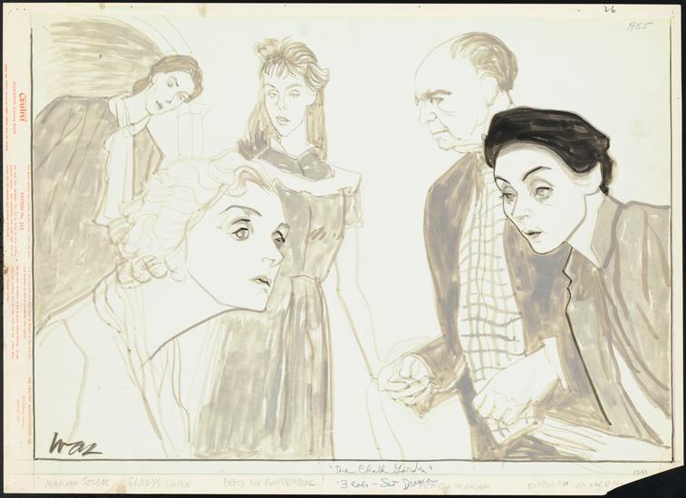 [Myron McCormick, Vicki Cummings and Siobhan McKenna in "Motel".]
