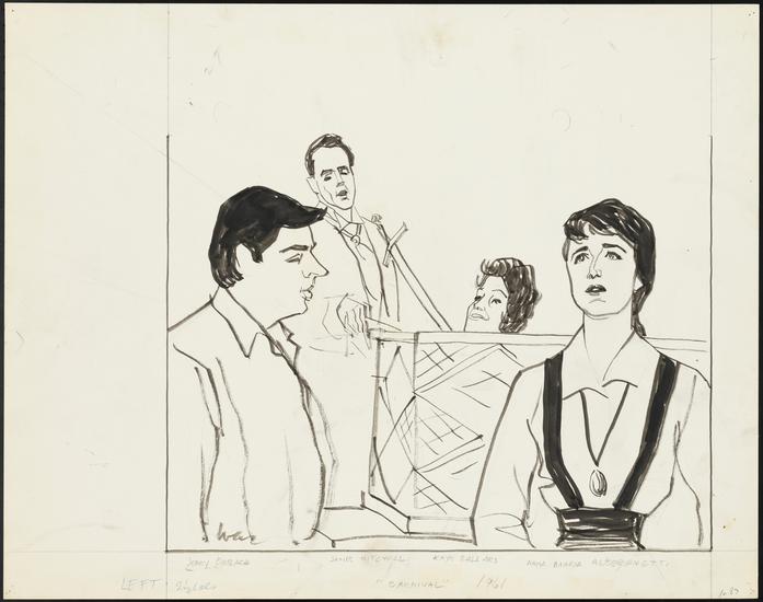 [Anna Maria Alberghetti rehearsing with composer and lyricist Bob Merrill for "Carnival!".]