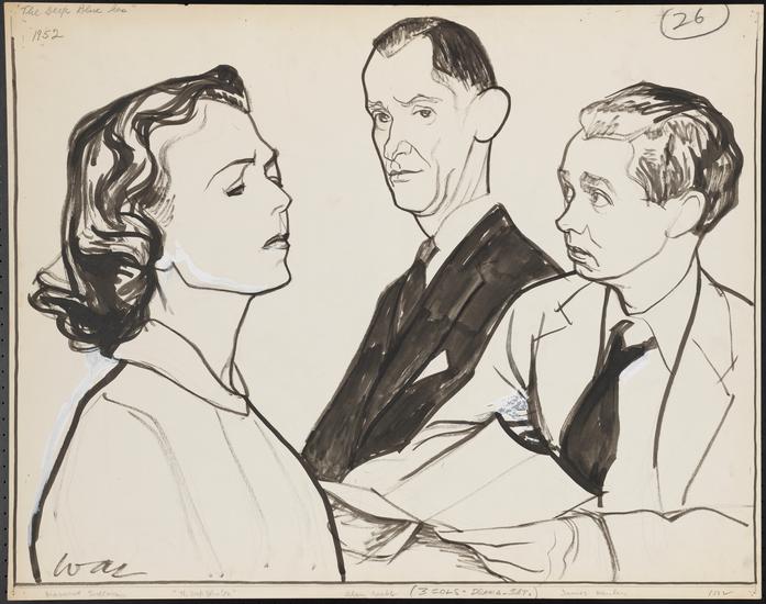 [Alan Webb as William Collyer, James Hanley as Frederick Page and Margaret Sullavan as Hester Collyer in "The Deep Blue Sea".]