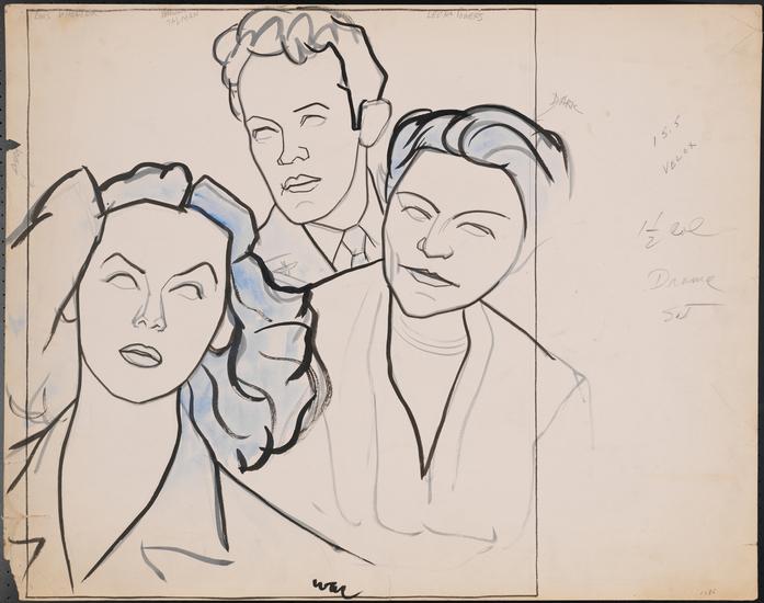 [Lois Wheeler as Miriam Oppenheim, Richard Whorf as Johnny Goodwin and Menasha Skulnik as Max Pincus in "The Fifth Season".]
