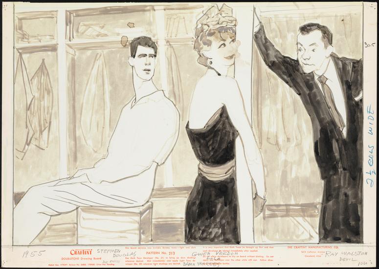 [Stephen Douglass as Joe Hardy, Gwen Verdon as Lola and Ray Walston as Applegate in "Damn Yankees".]
