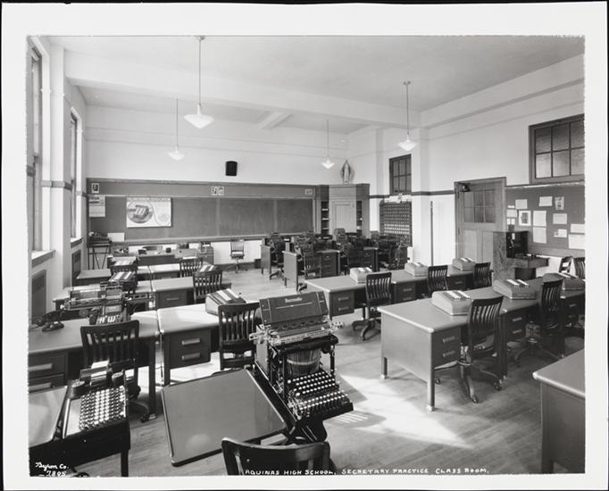 Schools, Aquinas High School, Secretary Practice Classroom.
