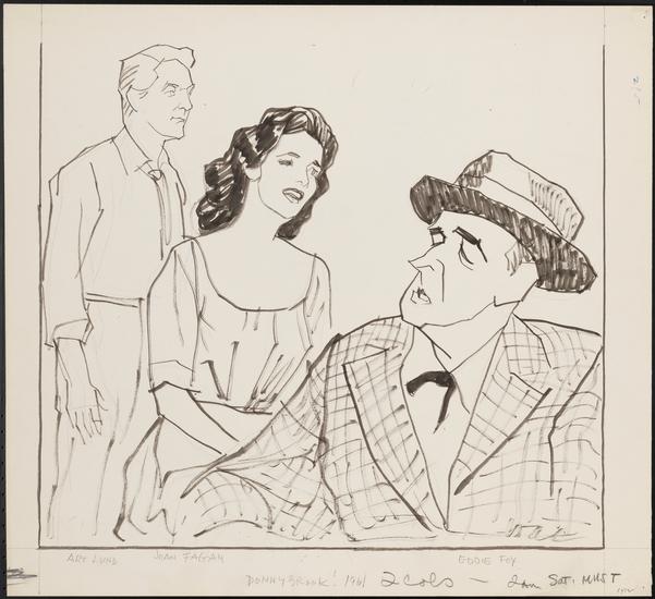 [Eddie Foy, Jr. as Hines, Janis Paige as Babe Williams and John Raitt as Sid Sorokin in "The Pajama Game".]