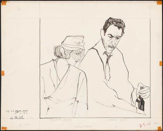 [Margaret Leighton as Pamela Pew-Pickett and Anthony Quinn as Caesario Grimaldi in "Tchin-Tchin".]