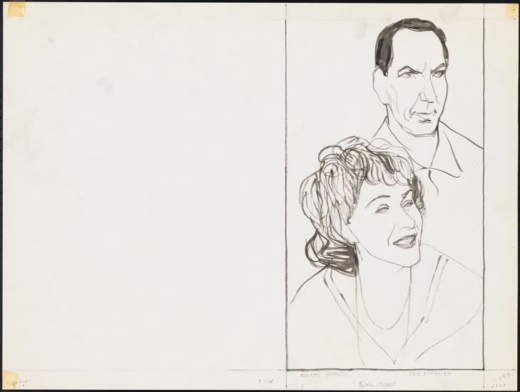 [Margaret Leighton as Pamela Pew-Pickett and Anthony Quinn as Caesario Grimaldi in "Tchin-Tchin".]