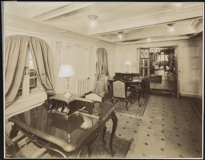Italia-America Line, S.S. "Colombo", at Pier 95 North River, Interior, First Class Writing Room.