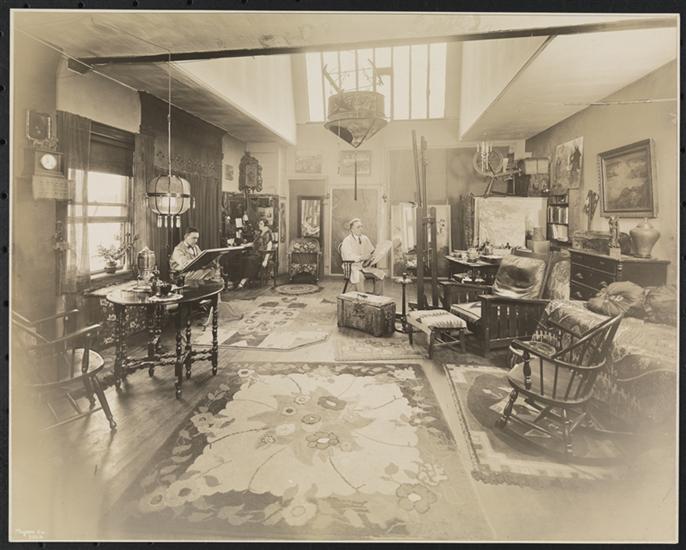 Mr. Waddell, Interior, Studio, Mr. & Mrs. Waddell in Background.