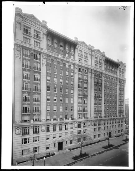 [Apartment building at the intersection of Riverside Drive and West 110th Street.]